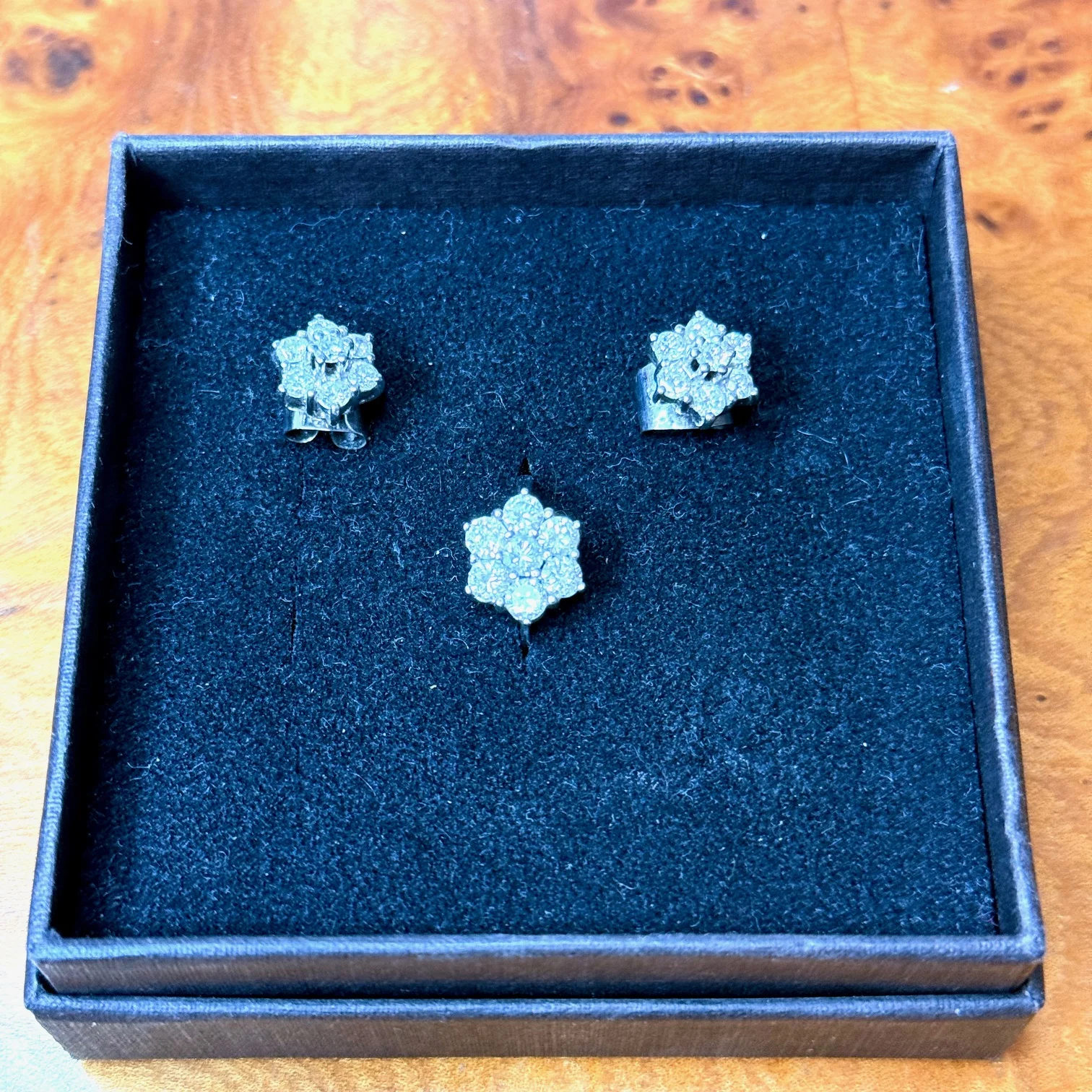 Conjunto de diamantes en oro blanco (anillo + pendientes)